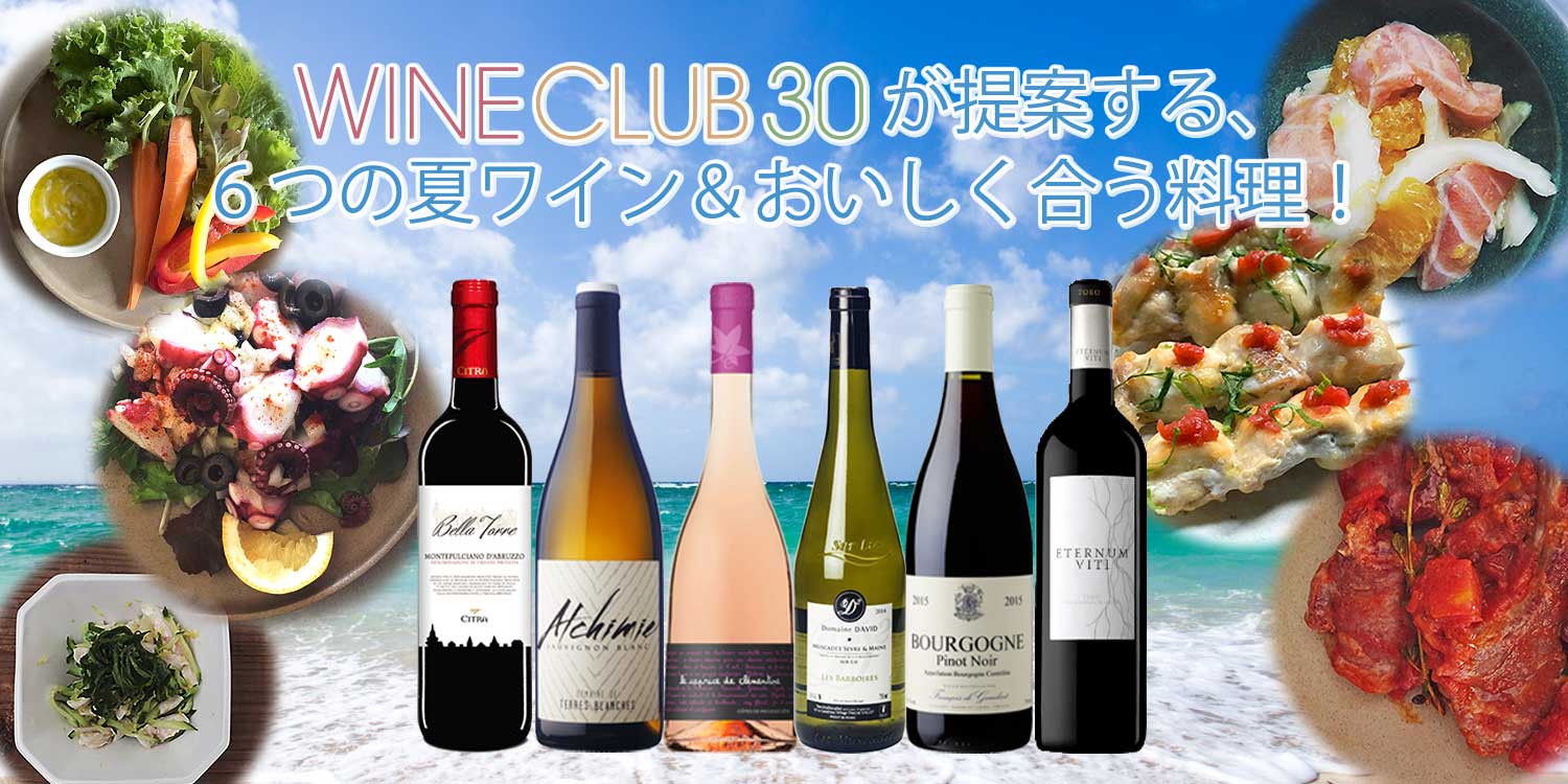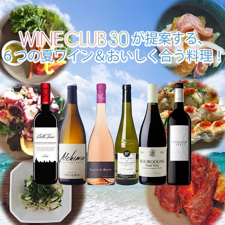 ワインと料理の相性にこだわり続けるWINE CLUB 30が、この夏楽しみたい「季節のマリアージュ」を、6種類ピックアップしてみました。野菜、お魚、お肉、和食に洋食、そして様々なシチュエーションで、夏のワイン&フードペアリングを楽しんでください!