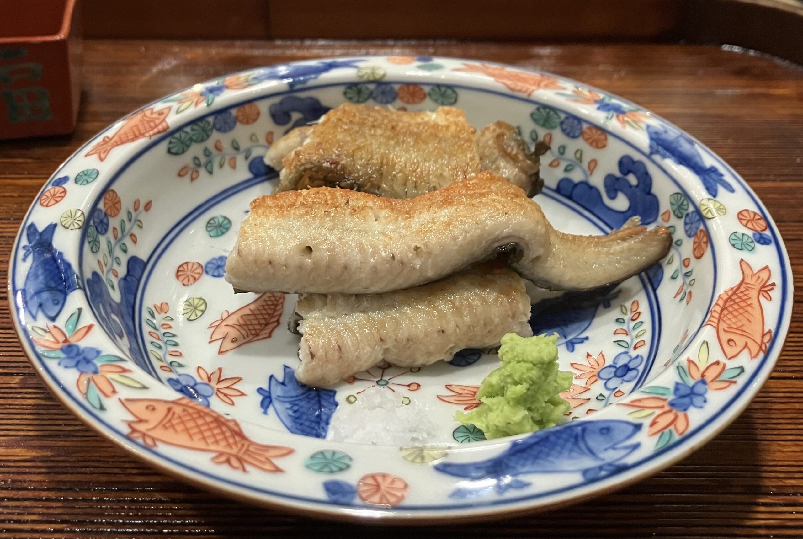 天然鰻は琵琶湖産、養殖鰻は浜名湖産をご用意いただきました。 どちらも身が厚く旨味が豊富で味わいも強かったのですが、比べてみると、天然は筋肉質で噛み応えがあり脂はそれほど多くないさっぱりとした味わいでした。養殖は天然に比べると脂があってどっしりしていますが、癖は強くなく柔らかで繊細だと感じました。 尚、白焼にはわさびを、蒲焼には山椒を、ほのかに香る程度に少し付けて食べています。