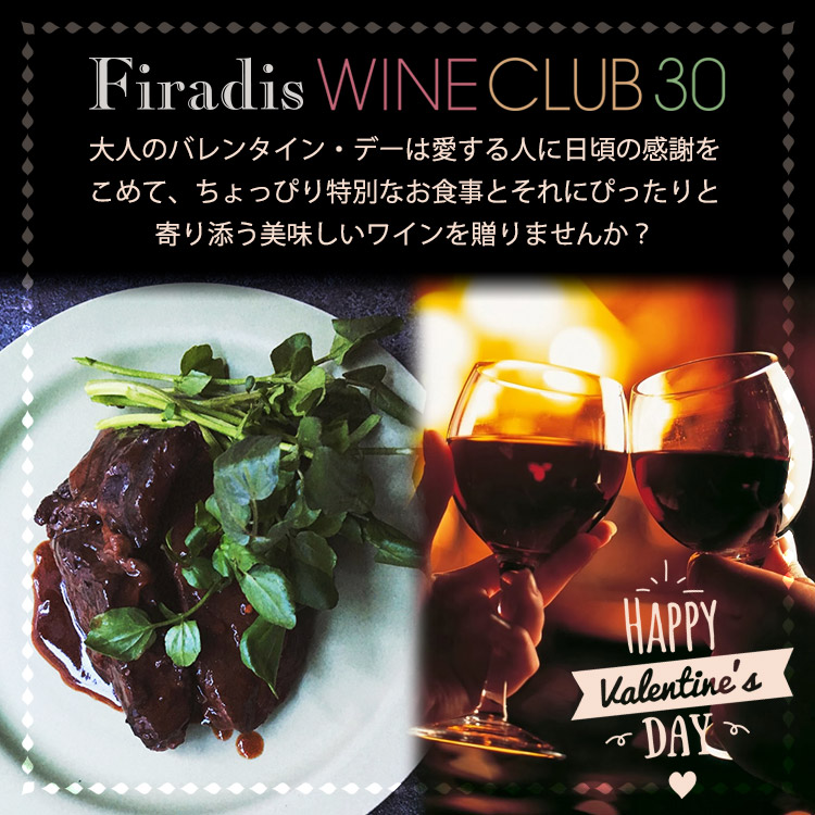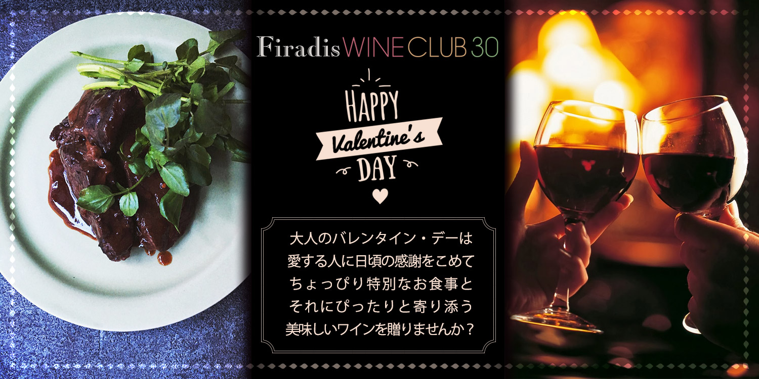 ワイン通販 Firadis WINE CLUB(フィラディス ワインクラブ サーティ)星付きフレンチにワインを卸す輸入業者が、バレンタインにおすすめワインとお料理をセレクトしました!このほかにも、1000円~2000円台のワインだけを30本厳選でおすすめしています。
