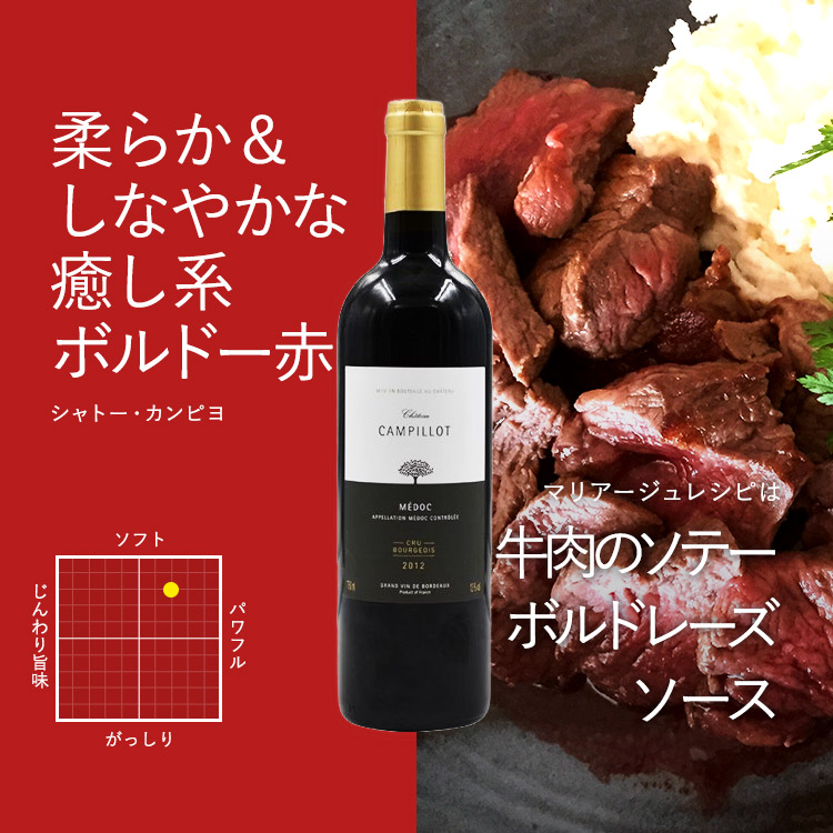 大切な人にワインを贈るのならば、本当にクオリティの高い「本物」を選びたい。そう考える方は多いと思います。でも、あまり気負い過ぎて高いワインを贈れば良い、というものでもありません。お返しがしやすいほど良い価格帯なのに、素晴らしく飲み頃でおいしいワインが用意できるのなら、それがベストの選択肢だと思います。そこでCLUB30がお勧めしたいのは、2010年のフランス・ボルドー産赤『シャトー・カンピヨ メドック』。現状21世紀のトップヴィンテージと言われる2010年と、まるでレストランのようなソースの本格的牛肉料理を楽しむマリアージュのご提案です。最高の素材で贅沢な時間をゆっくりと過ごしても、ワインと食材で1万円もいきません。その分でプレゼントがもう一つ用意できるかも・・・? レシピはコチラ!
