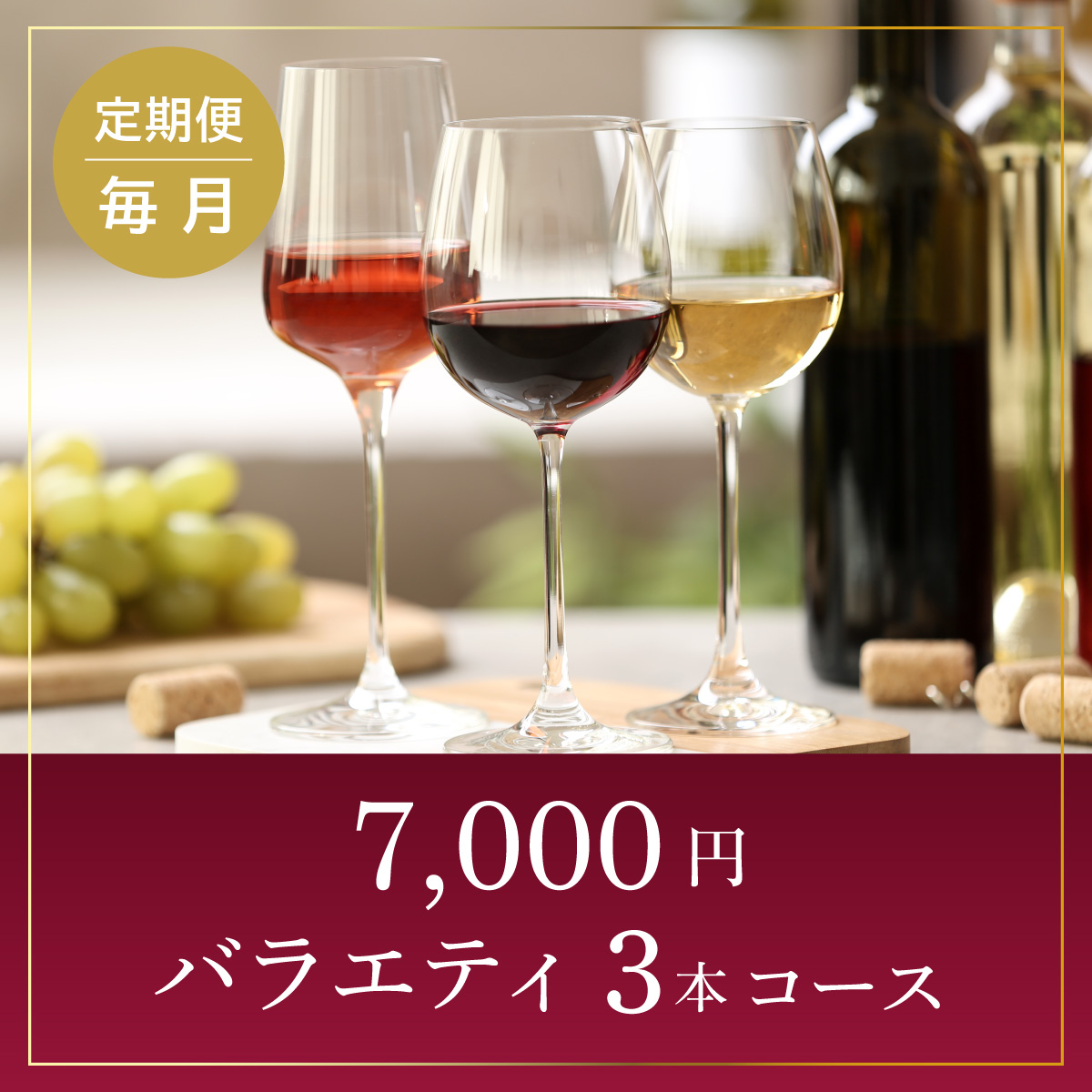 【ワインらくらく定期便】7,000円コース(バラエティ3本)