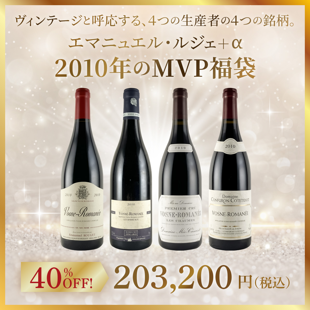 【2010年のMVP福袋】エマニュエル・ルジェ+α熟成ワインというと、つい評価や相場が気になってしまいますよね。でも、少し違う角度から。例えばヴィンテージの個性と、生産者の表現がふっと噛み合う瞬間。その重なり方に意識を向けると、これまで名前だけで判断していた造り手のすばらしさや、熟成ワインの奥行きが一気に開けてくるんです。私自身も長くこの世界に携わってきて、そんな“気づきの一杯”に何度も驚かされてきました。