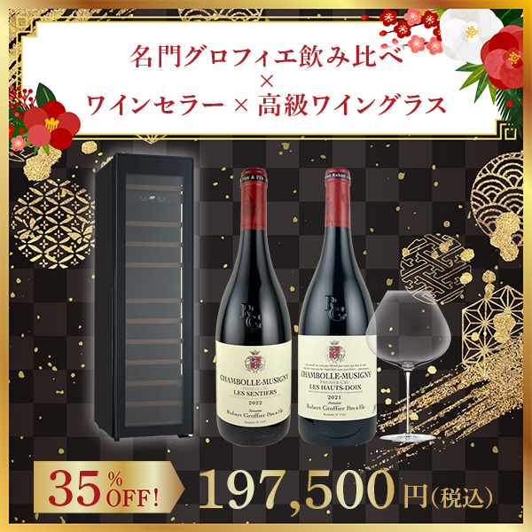 世界最高峰のトップドメーヌの名門グロフィエから2023年 2本・ハンドメイドグラス・44本収納のワインセラーをまとめた限定セット。