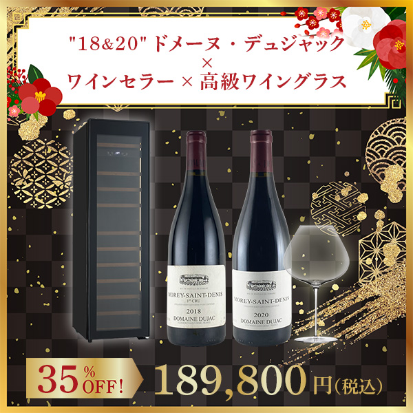 ドメーヌ・ドゥジャックの魅力を体感できる2018年&2020年の2本・ハンドメイドグラス・44本収納のワインセラーをまとめた限定セット。