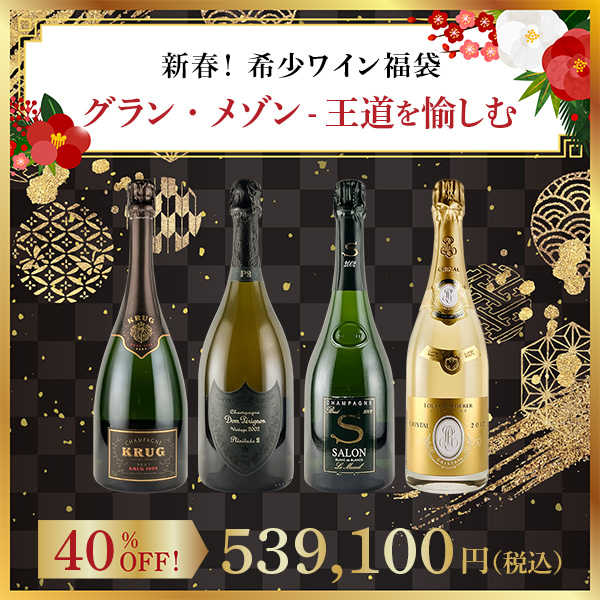 この福袋は、シャンパーニュの「王道」を一度に体験するためのセットです。完成度、知名度、ストーリー性。そのすべてが揃った王道だけを集めました。まず1995年のクリュッグ・ミレジメ。クラシックな力強さと熟成感、厚みのある構造と長い余韻。この1本が、セット全体の重心と格を担います。熟成シャンパーニュが持つべき奥行きとは何かを、最初に教えてくれる存在です。続く2002年ドン・ペリニヨン P2。完璧なヴィンテージを、時間という要素でさらに磨き上げた1本です。張りのある酸と精密な構造は、まさに「熟成シャンパーニュの教科書」。完成度という言葉が、そのまま当てはまります。