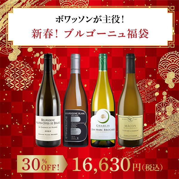 年が明けてもブルゴーニュが飲みたい!でも、気負わず開けられて、ちゃんと上質な白がいい。そんなわがままに、きちんと向き合った福袋です。主役はボワッソン。澄んだ果実感と張りのある酸を軸に、日常にすっと溶け込みながらも、来客時や少し特別な日に開けても安心な白を4本揃えました。「今日はとりあえず白で」ではなく、「今日はこの白にしよう」。そう思わせてくれる一本があるだけで、年始の食卓はきれいに整います。香りは控えめ、でも口に含むと輪郭ははっきり。果実とミネラルがきちんと並び、樽が前に出すぎないから、料理の邪魔をしません。飲み進めても疲れにくく、自然とグラスが重なります。